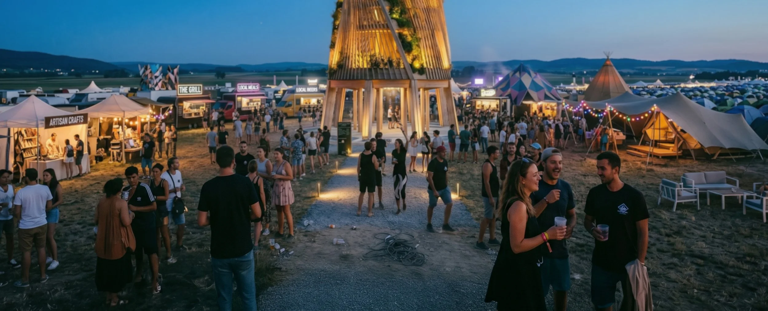 Festivals · Concerts · Sports events · Outdoor stages · Public gatherings · Temporary campuses · Beach and city programming